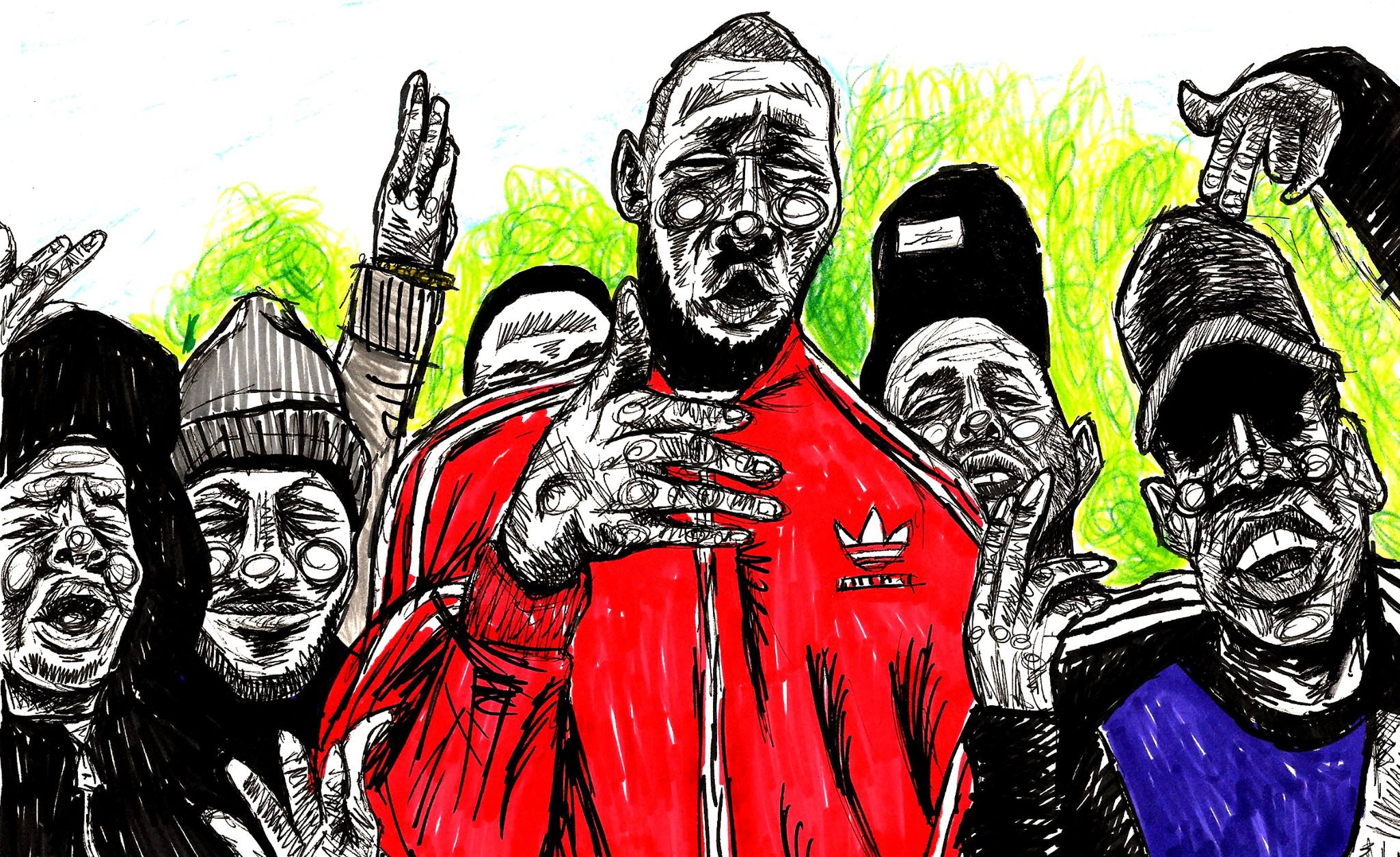 An illustration of grime artist Stormzy, created for a MANDEM article by Eric Sings