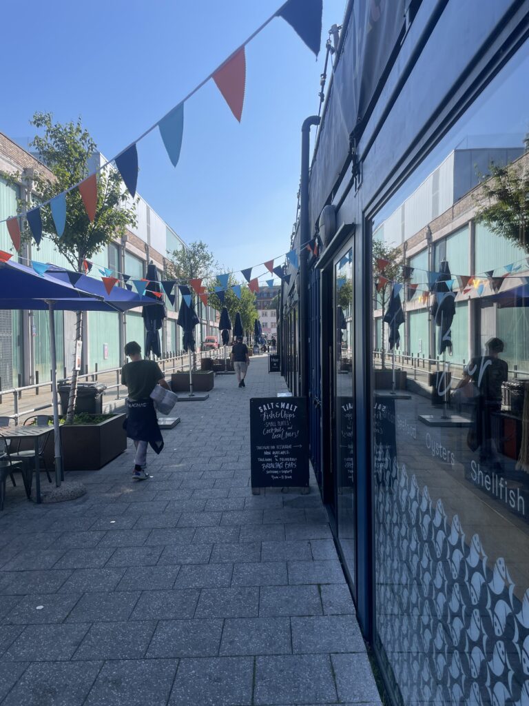 Bunting at Wapping Wharf has been put up ahead of the Harbour Festival – photo: Martin Booth