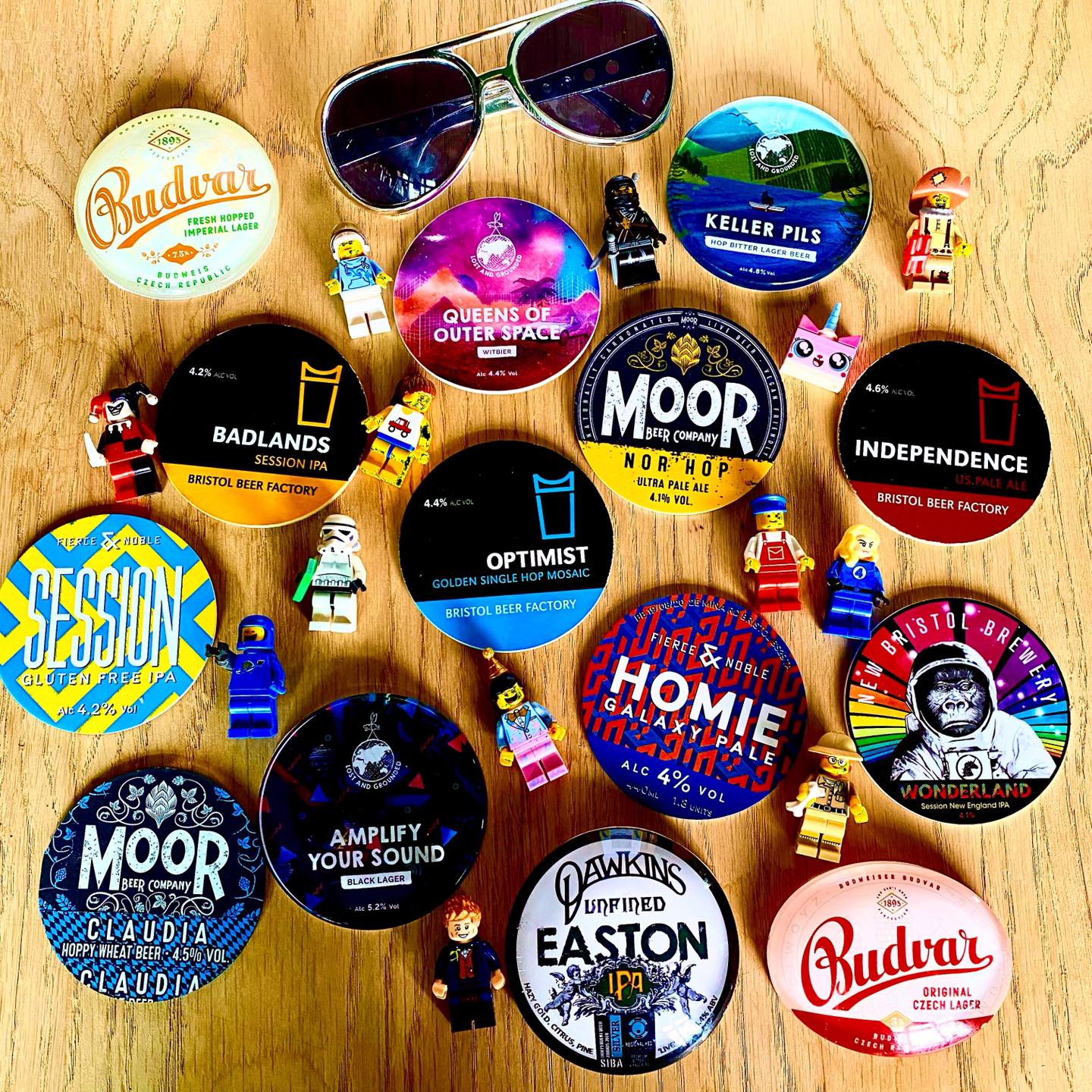 A collection of pump clips and Lego mini figures at the Green Man – photo: The Green Man