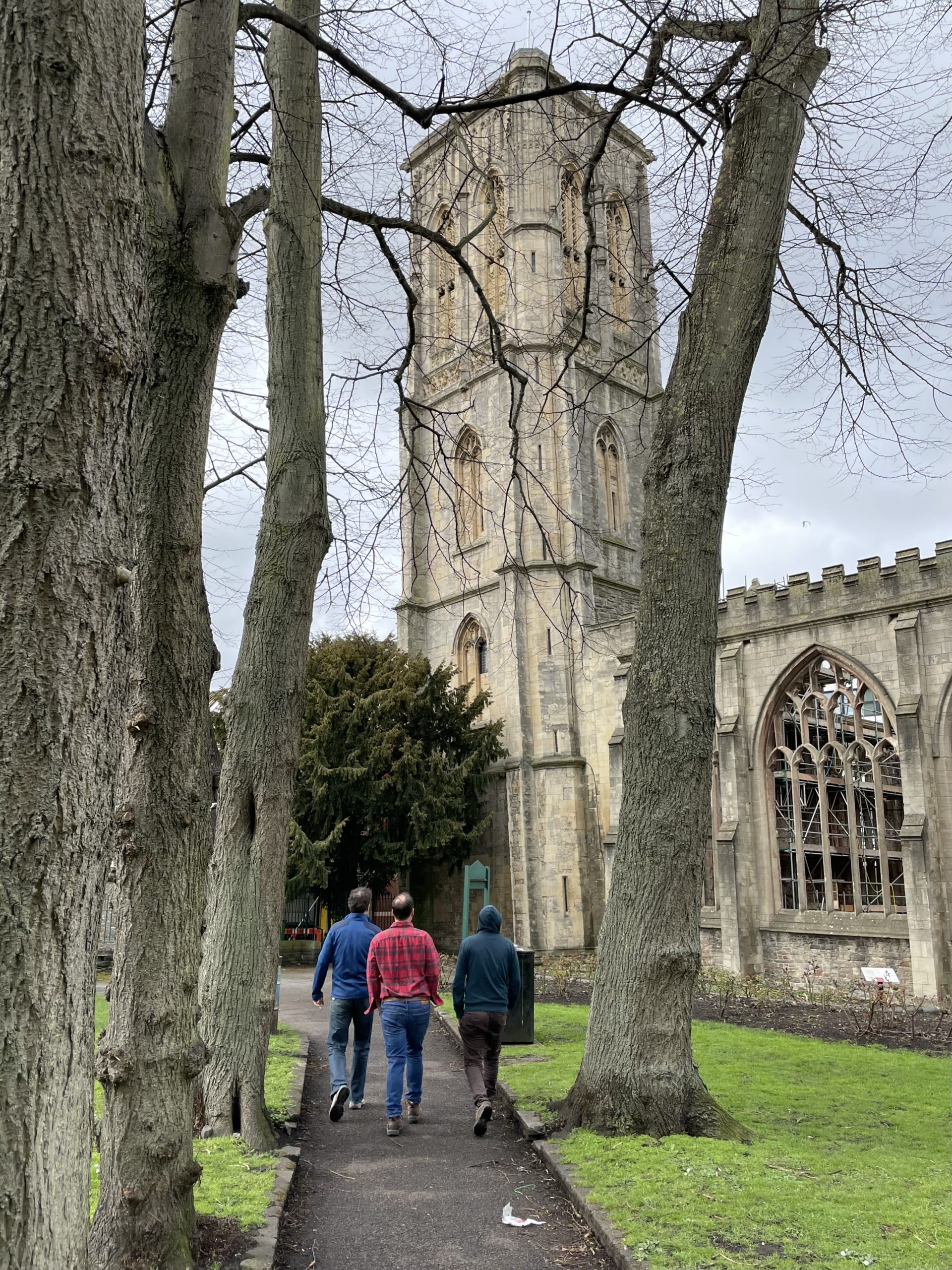 The leaning tower and walls of this large late medieval church in Bristol survived bombing during the Second World War – photo: Martin Booth