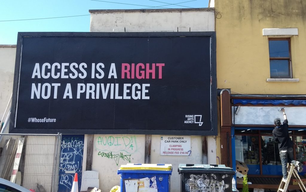 Adblock Bristol gave Rising Arts Agency their St Werburgh’s billboard during July and August 2020 as part of an outdoor citywide exhibition showcasing their members’ responses to the Covid-19 lockdown and the wider Black Lives Matter campaign – photo: Adblock Bristol