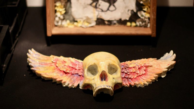 The journey Doug alludes to is written in the works he has created. He gestures to a piece featuring a set of doll heads on a rusty background, empty eye sockets dark against dirty, dishevelled faces. “I started therapy about a year ago. This one is before the therapy, and it’s pretty dark, pretty macabre. Without intending to, my output changed during that time.”