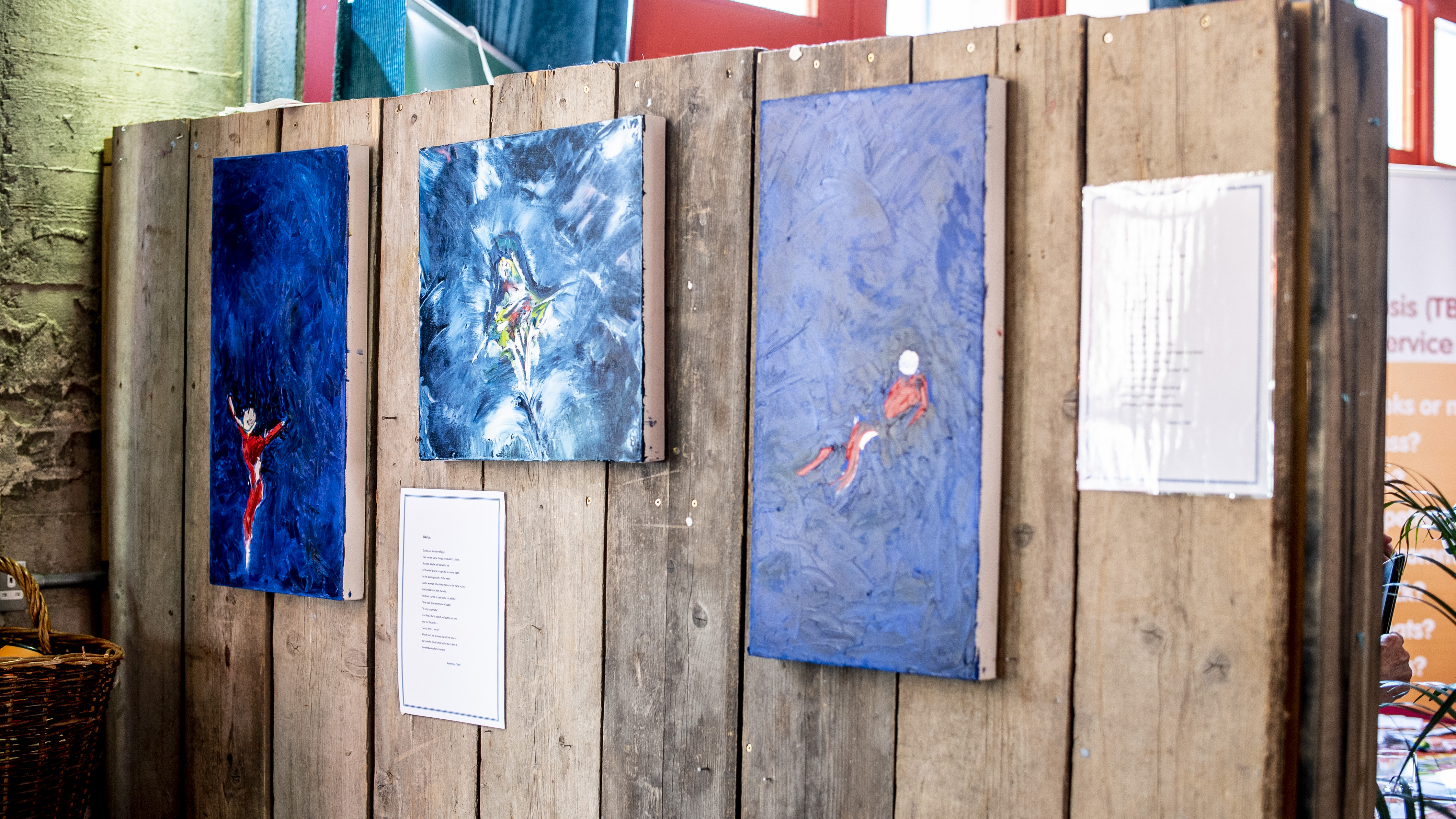 Also in the cafe is the Artwork Exhibition, displaying art by individuals with personal experience of homelessness. A collaboration between UWE Bristol, 1624 Independent People and Emmaus Bristol, the work is a range of painting, poems and collages.