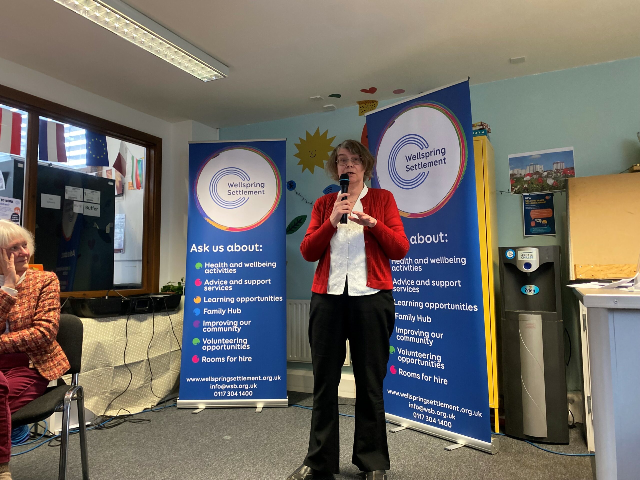 Anne Joslin, a local resident and member of the Wellspring Settlement Board of Trustees, also took a moment to highlight the importance of Hilda Cashmore’s work – photo: Isabelle McIntyre