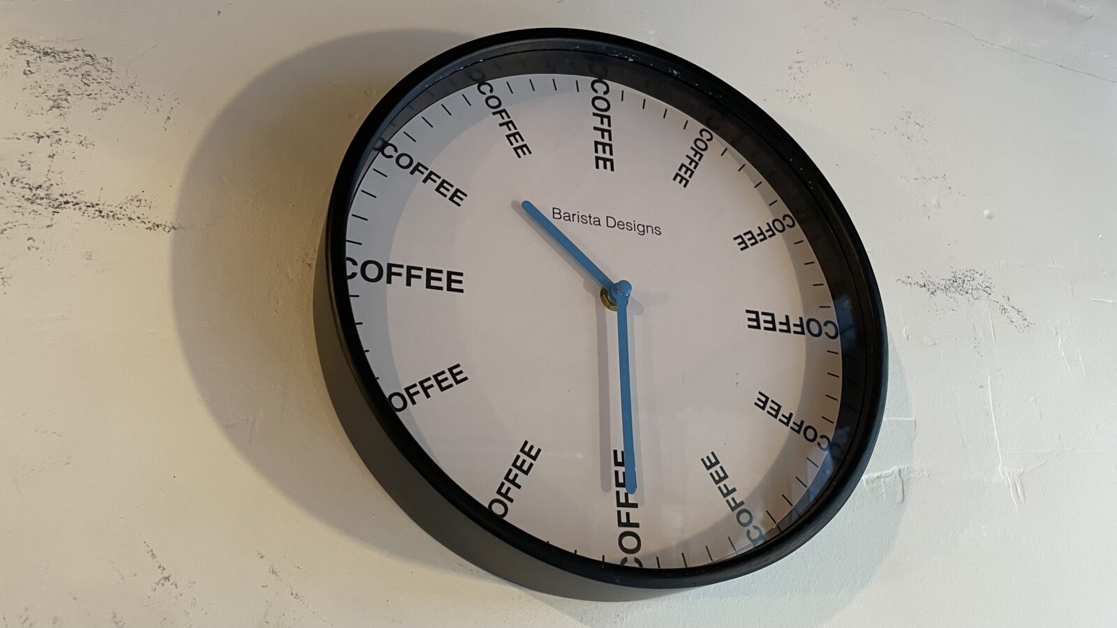 He parks himself on the seat directly in front of the bar and loudly declares, to no one in particular, that he would like an extra milky latte and a bacon sandwich.