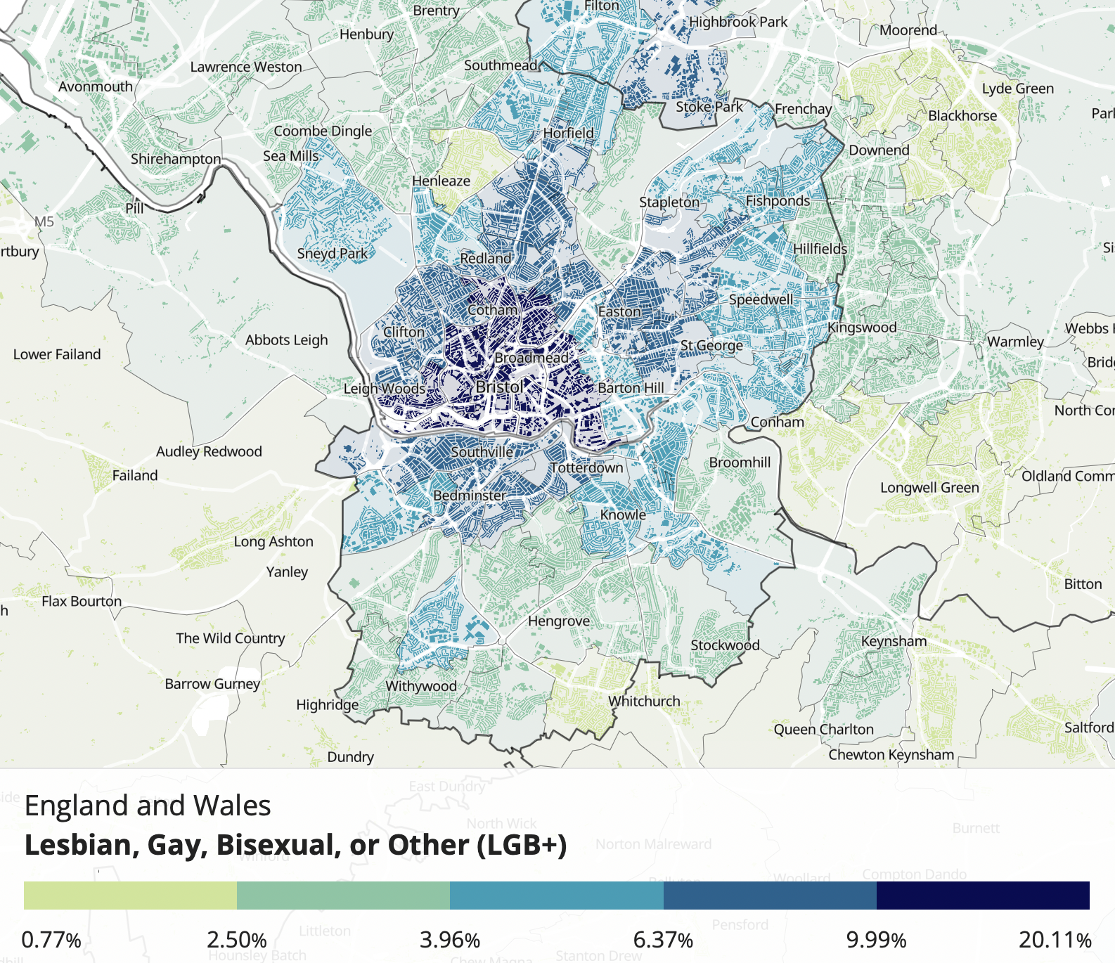 A map of Bristol’s LGBTQ+ people – image: ONS