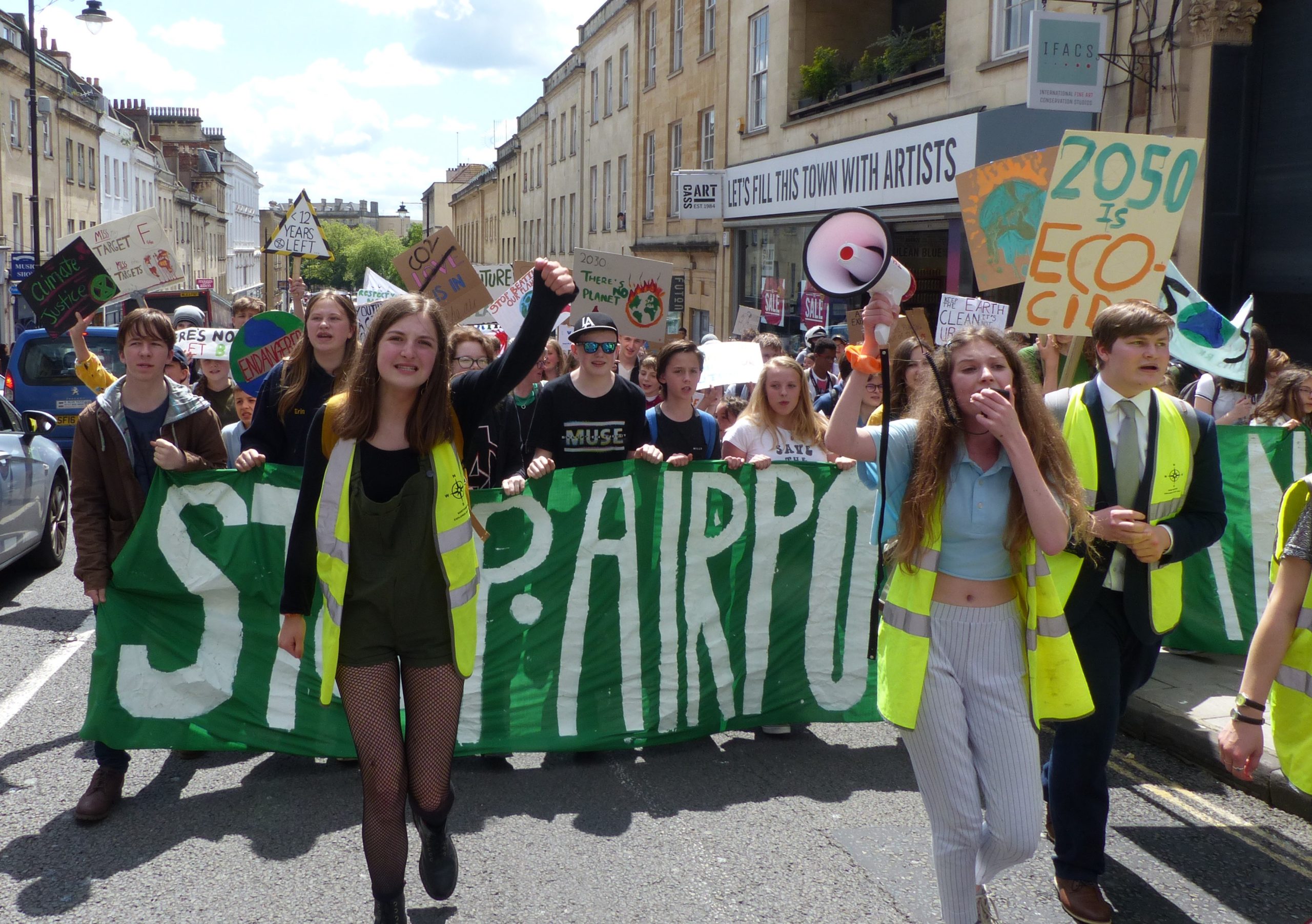 Bristol Youth Strike 4 Climate protesters on Park Street – photo: Archie Richards
