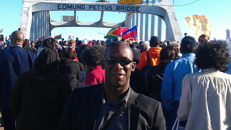 On Sunday March 3 2012, I took part to pay tribute to those who had bravely marched before me. I park near to the Brown AME Church, where Presidents Obama and Clinton have each given the key note address at previous Jubilees, and walk towards the infamous towering metal struts of the bridge where thousands gather patiently in anticipation on the short incline. Like many southern monuments, the bridge is named after a Confederate hero and defender of a system that we would recognise today as apartheid. The mood is respectful yet jubilant, and I am warmed not only by the spring sunshine but also by the presence of many flags of the Caribbean carried by local school children. I’m informed its part of a school project about the West Indies and I smile as I pick out the Guyanese flag fluttering proudly amongst them. A signal is given and we march forward crossing over the flowing Alabama River.