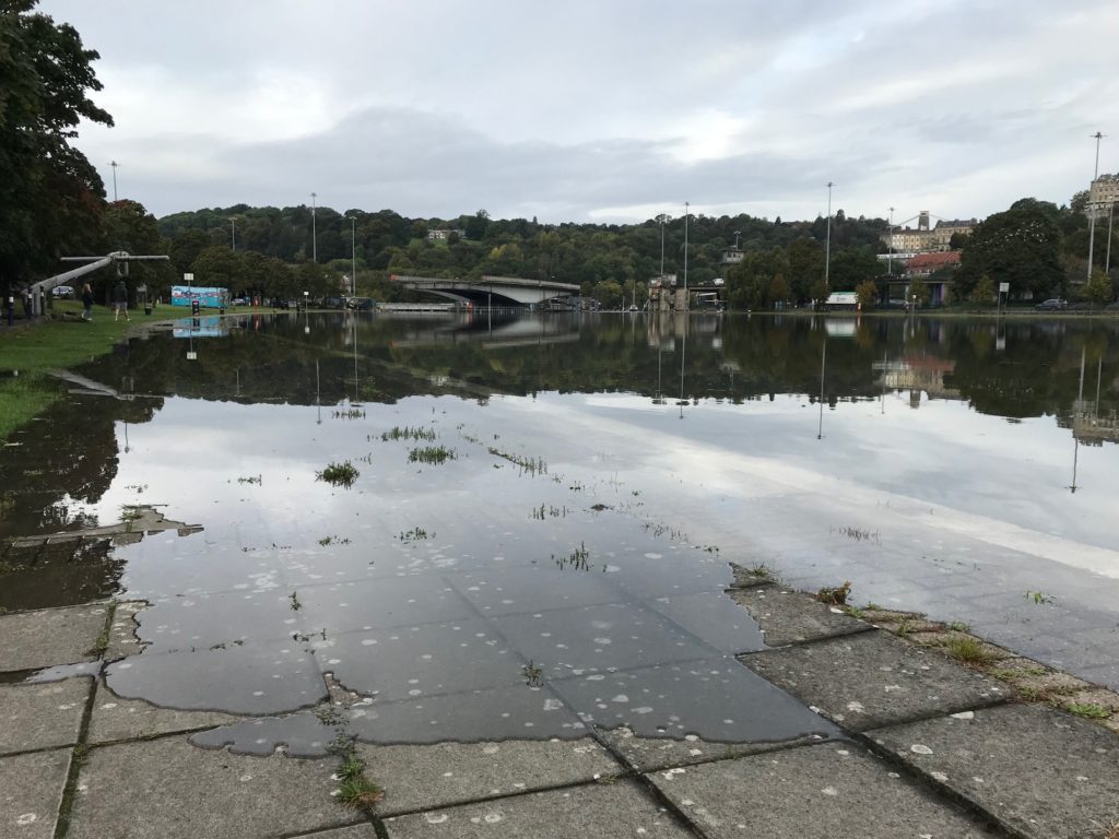Water spills over the top of the Cumberland Basin during a recent high tide – photo: Martin Booth