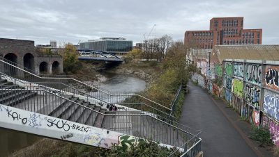 The development site is next to the ramp leading up to the St Philip’s Footbridge, colloquially known as ‘the bridge to nowhere’ – photo: Martin Booth