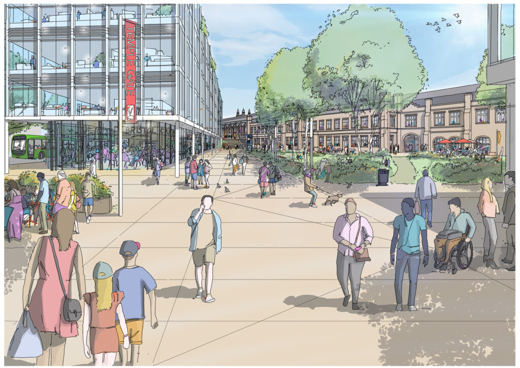 As part of Bristol Temple Quarter, Friary North will see a new pedestrianised public civic square, and new office space and residential buildings – image: Bristol Temple Quarter