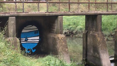 The first Mr Bump painting as it appeared on the Portway in 2021. The Bumpsy tag has since been added – photo: Mary Milton