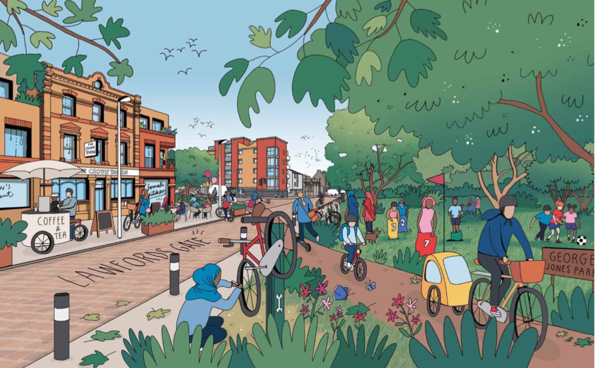 But the images – in which cheery children sack race each other across George Jones Park, the street cafe with outdoor seating, widened pavements and narrowed main road – are a stark contrast to the realities of the area and its community.