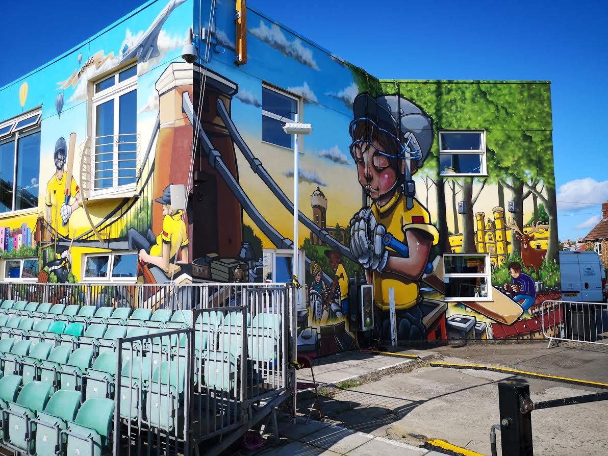 Bristol street artist Silent Hobo created a mural, which can be seen when entering through the gates at Nevil Road into the grounds, and a cricket ball with the club crest upon it bursts out of the wall next to the gates.