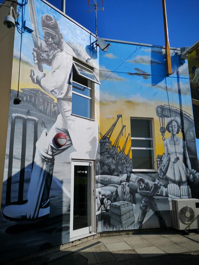 The street art designs have reimagined scenes from cricket’s past and includes a giant depiction of the cricketer WG Grace. A range of male and female cricketers, both young and old, are seen in a contemporary setting featuring famous Bristol landmarks.