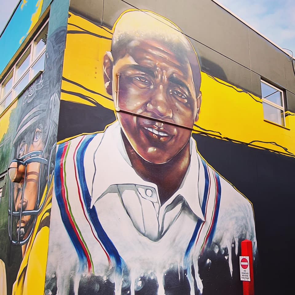 The mural of Mark Alleyne at the County Ground was painted by Silent Hobo in 2021 – photo: Gloucestershire Cricket