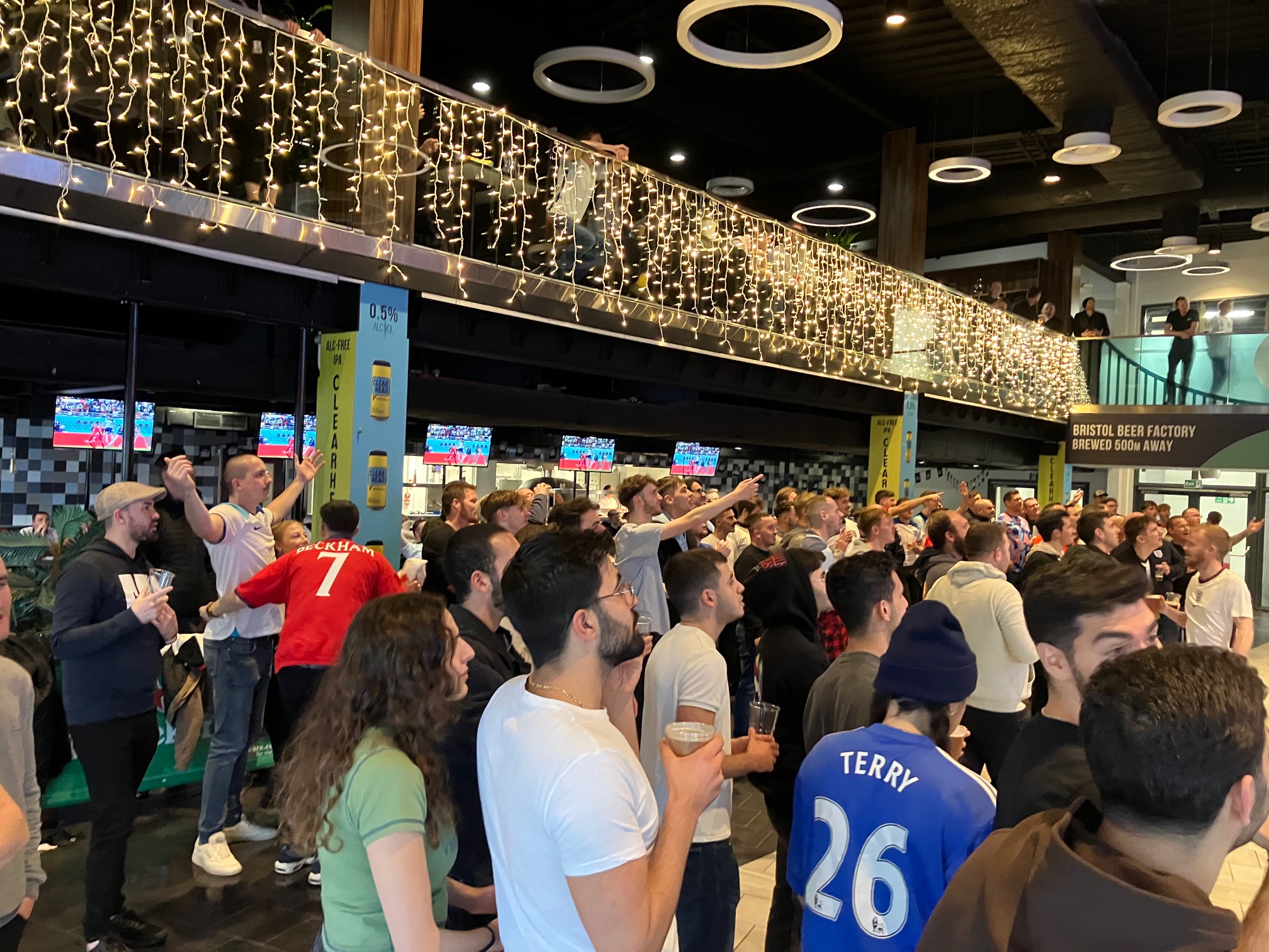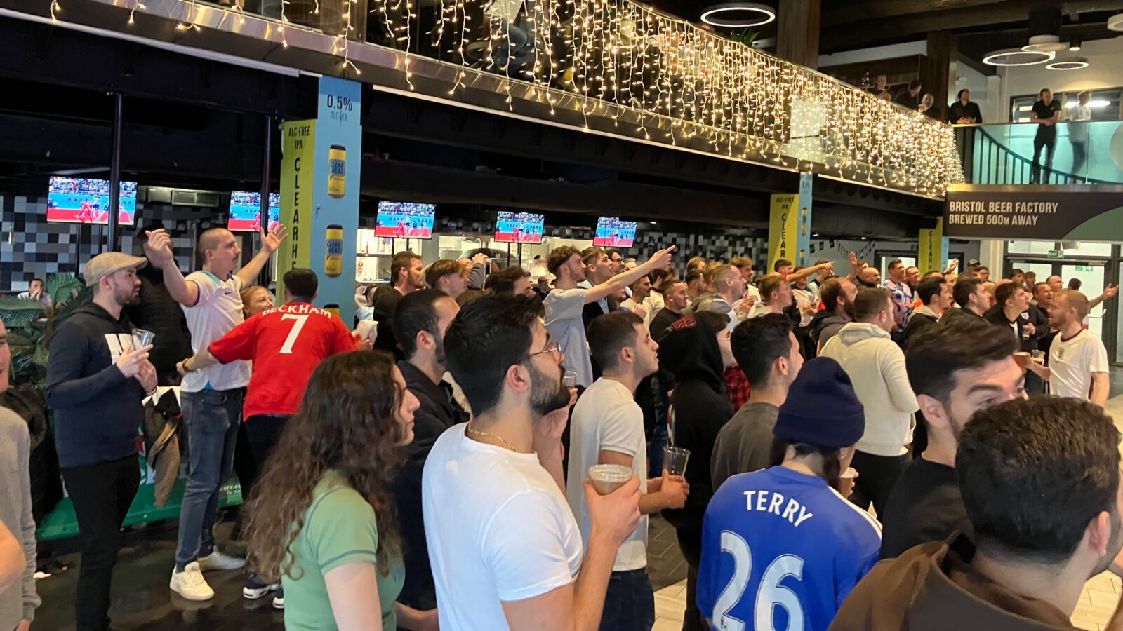 “Football’s coming home” could be heard from chanting fans at half time as England were 3-0 up against Iran. The atmosphere was buzzing and pints of beer were flowing inside Ashton Gate Sports Bar.
