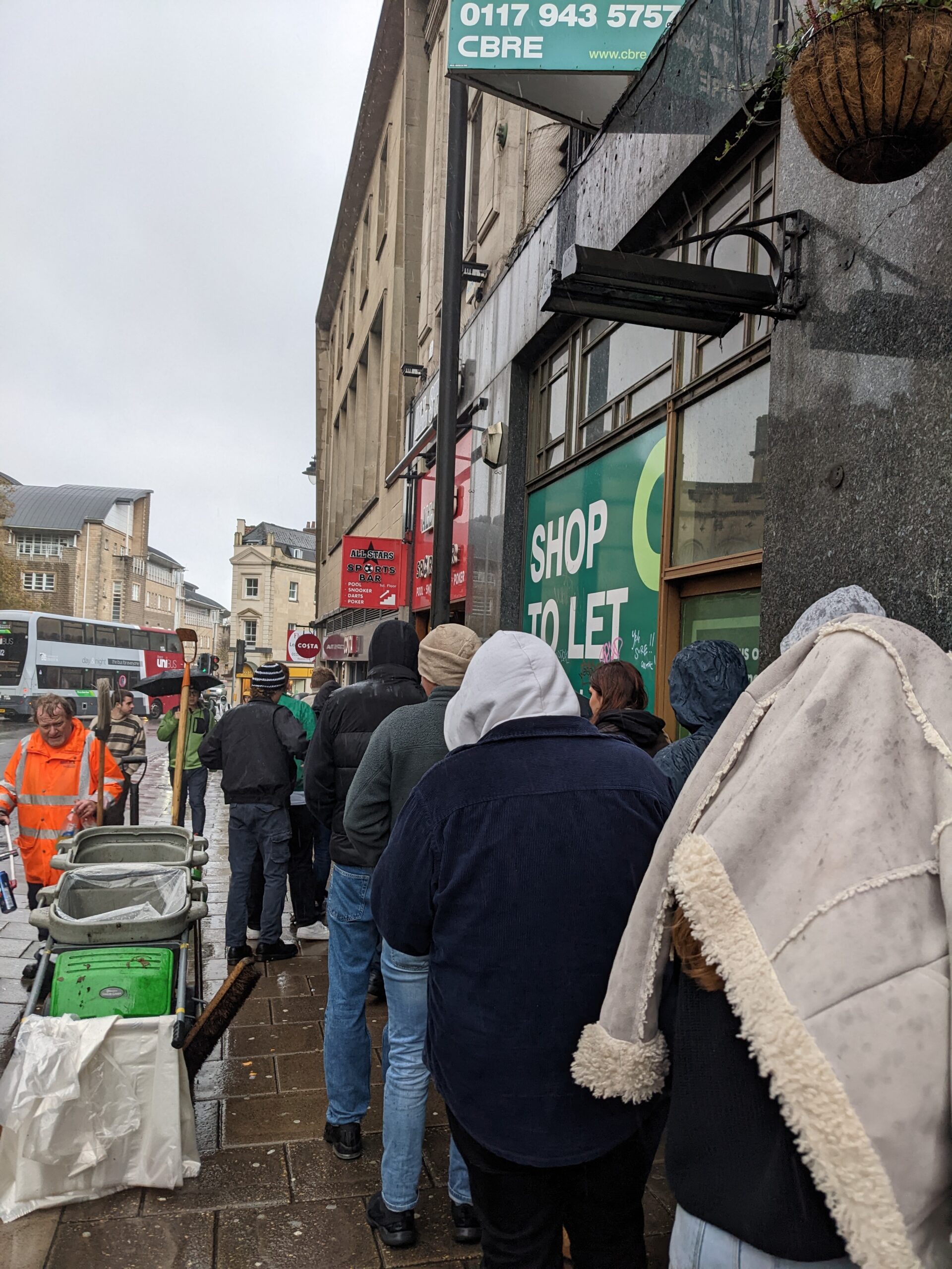 Dedicated fans queuing outside Allstars Sports Bar on Queen’s Road – photo: George Townsend