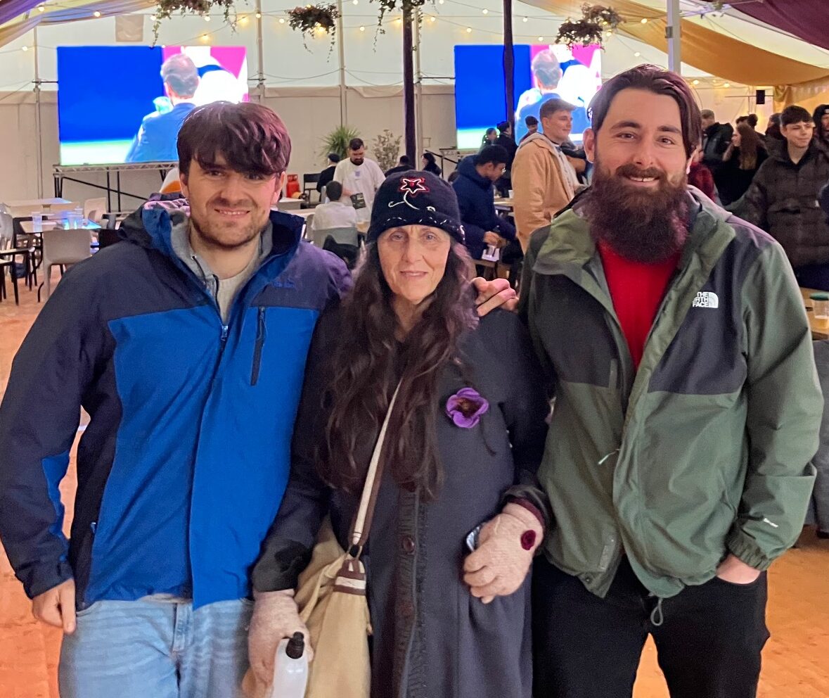 Chris Bell (right) with his mum and brother at Propyard for the England game – photo: Rachel Sutherland
