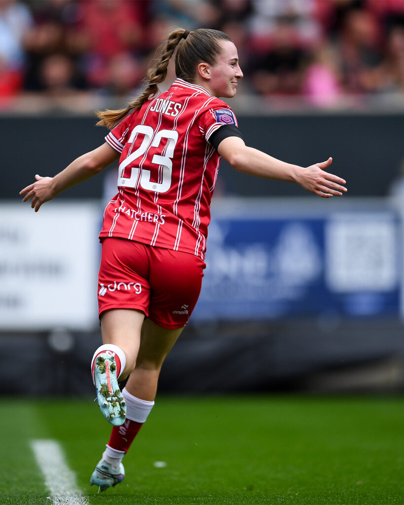 Carrie Jones celebrates her first goal for Bristol City – photo: JMP
