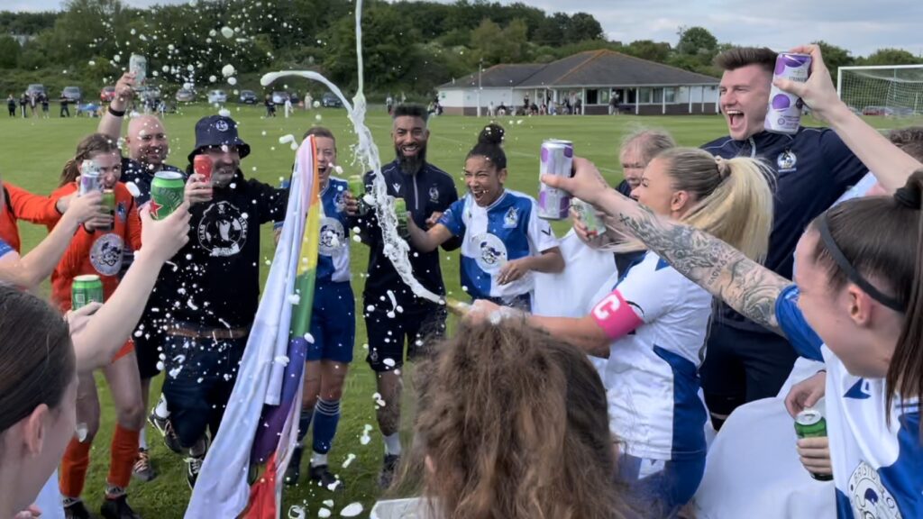 The Gas Girls celebrate their South West Regional Premier League Cup win in 2023 – photo: Martin Booth