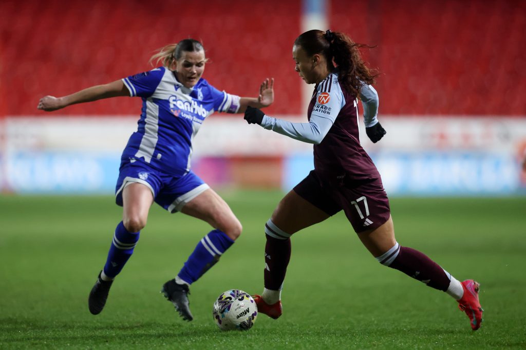 Rianne Bourne-Hallett challenges Ebony Salmon of Aston Villa – photo: Nathan Stirk / FA via Getty Images