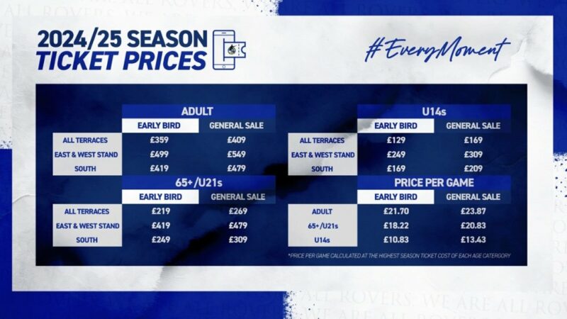 Rovers fan @simon1883 shared this sentiment: “No family ticket, removal of u18 bracket nothing to incentivise youngsters. Are you sure you’ve got this correct? Adult increases in isolation are not bad. But the kids….. you need the kids!”