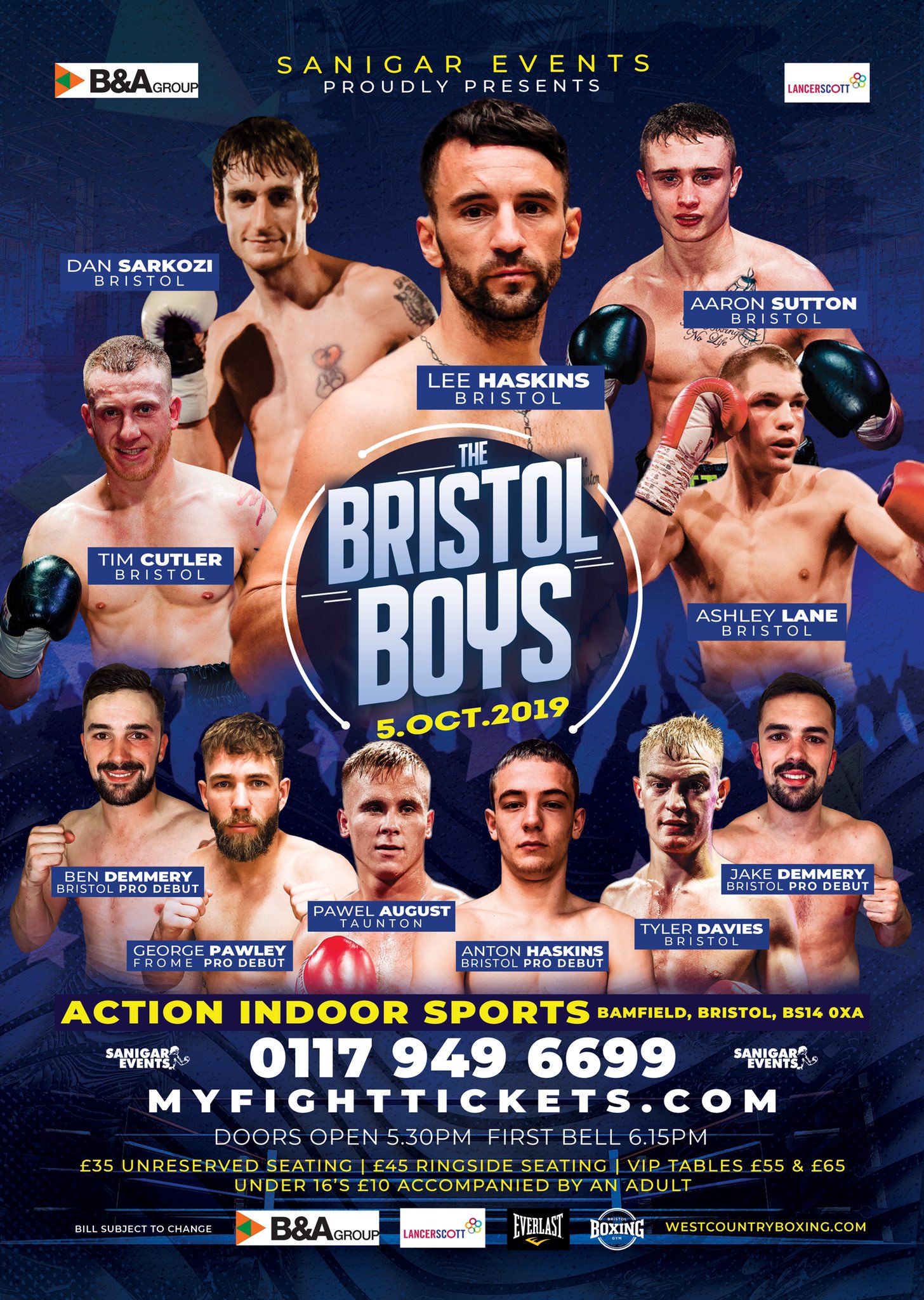 Other Bristol boxers on the card of a night from Sanigar Events include Dan Sarkozi, Aaron Sutton, Tim Cutler, Ashley Lane, Ben Demmery, Tyler Davies and Jake Demmery.