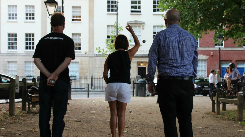 A perfectly splendid game of petanque in Queen Square