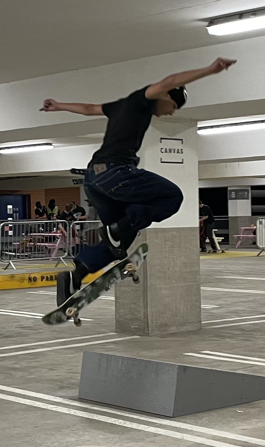 On Saturday evening, the skaters could be heard long before they could be seen as they practised their tricks on a course consisting of modified parking blocks and double-sided curbs