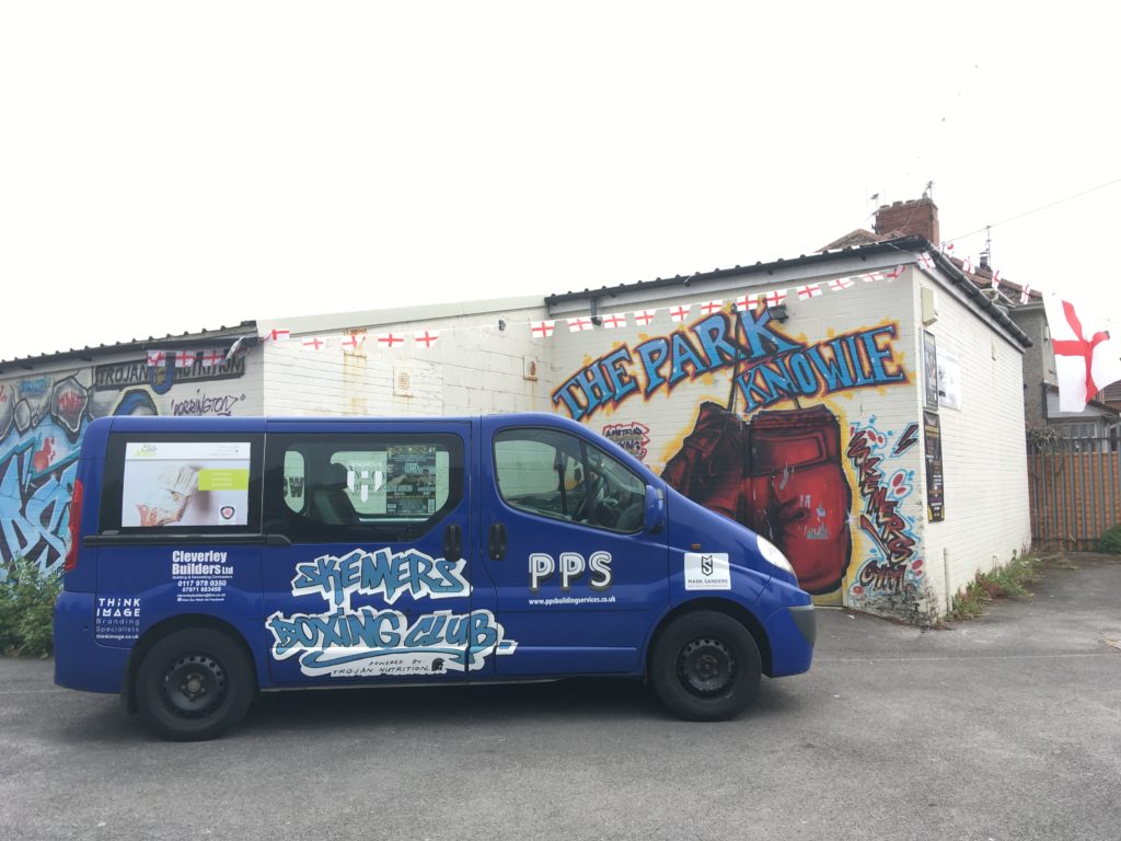With its massive pair of red boxing gloves spray painted onto the front door of the club, and posters advertising recent high-profile fights for Knowle West-born professional boxer Duane Winters, Skemer’s Boxing Gym in Knowle West is a community beacon. Tucked away down residential Tavistock Road and backing onto the playing fields of The Park, the former youth club has been transformed by Skemer Winters since he took it on voluntarily in 2012.