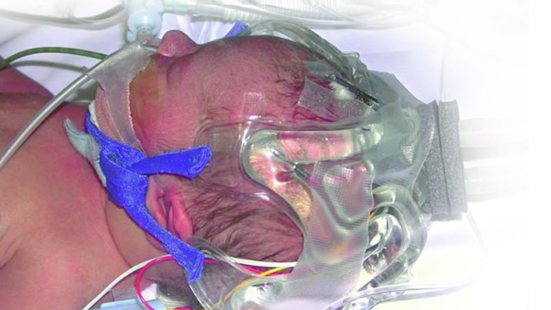 A water-filled cap helps to cool a baby’s brain after it was deprived of oxygen at birth. Credit: University of Bristol.