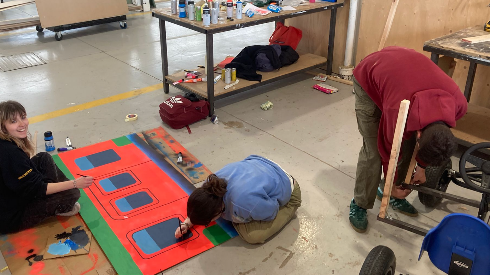 Red Bull provided the team space and construction materials for The Subway Surfers team to work on their soapbox.