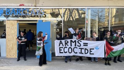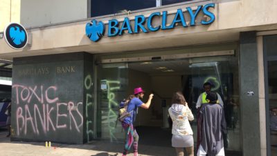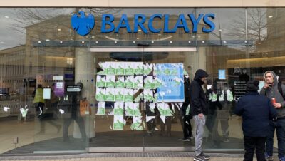 News / Extinction RebellionXR Bristol gather outside Barclays Broadmead to protest ‘climate criminals’The group plastered the building with posters and reportedly encouraged customers to switch banks Read more