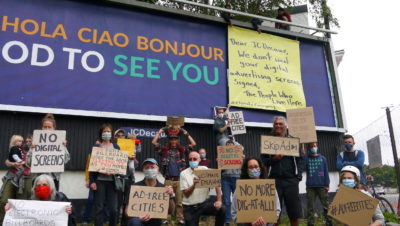 News / Adblock BristolProtest against digital advertising screens on Bath RoadCampaigners used a giant yellow sticky note to make their feelings clearRead more