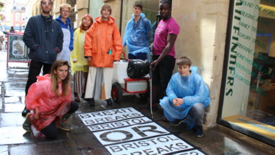 Features / Brexit‘Clean graffiti’ protest marks streets of Old CityA group of young people in Bristol are trying to mobilise others to be more politically aware Read more