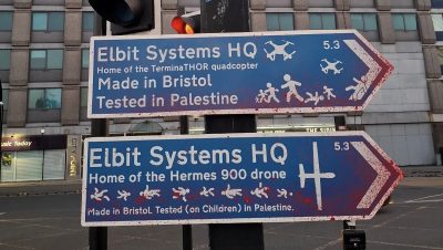 News / Elbit Systems‘Made in Bristol, tested in Palestine’Signs pointing people in the direction of Elbit Systems have appeared across BristolRead more
