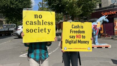 News / protestProtesters gather to campaign against cashless societyThey held placards that read "No cashless society" and "Say NO to Digital Money"Read more