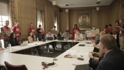 News / acornTenants protest council’s ‘whitewashing’ rent commissionTenants lined up to post their stories through a letter box outside the council building Read more