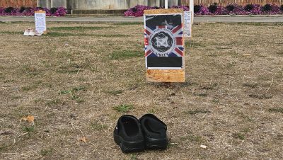 Art / public artPublic art installation representing ‘silenced’ voicesShoes were placed across College Green as part of the displayRead more