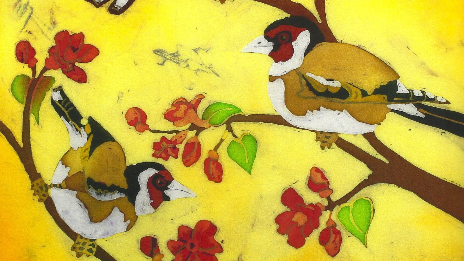 Vibrant paintings and batik art by Bristol artists Mary Price and Jo Whiteland.