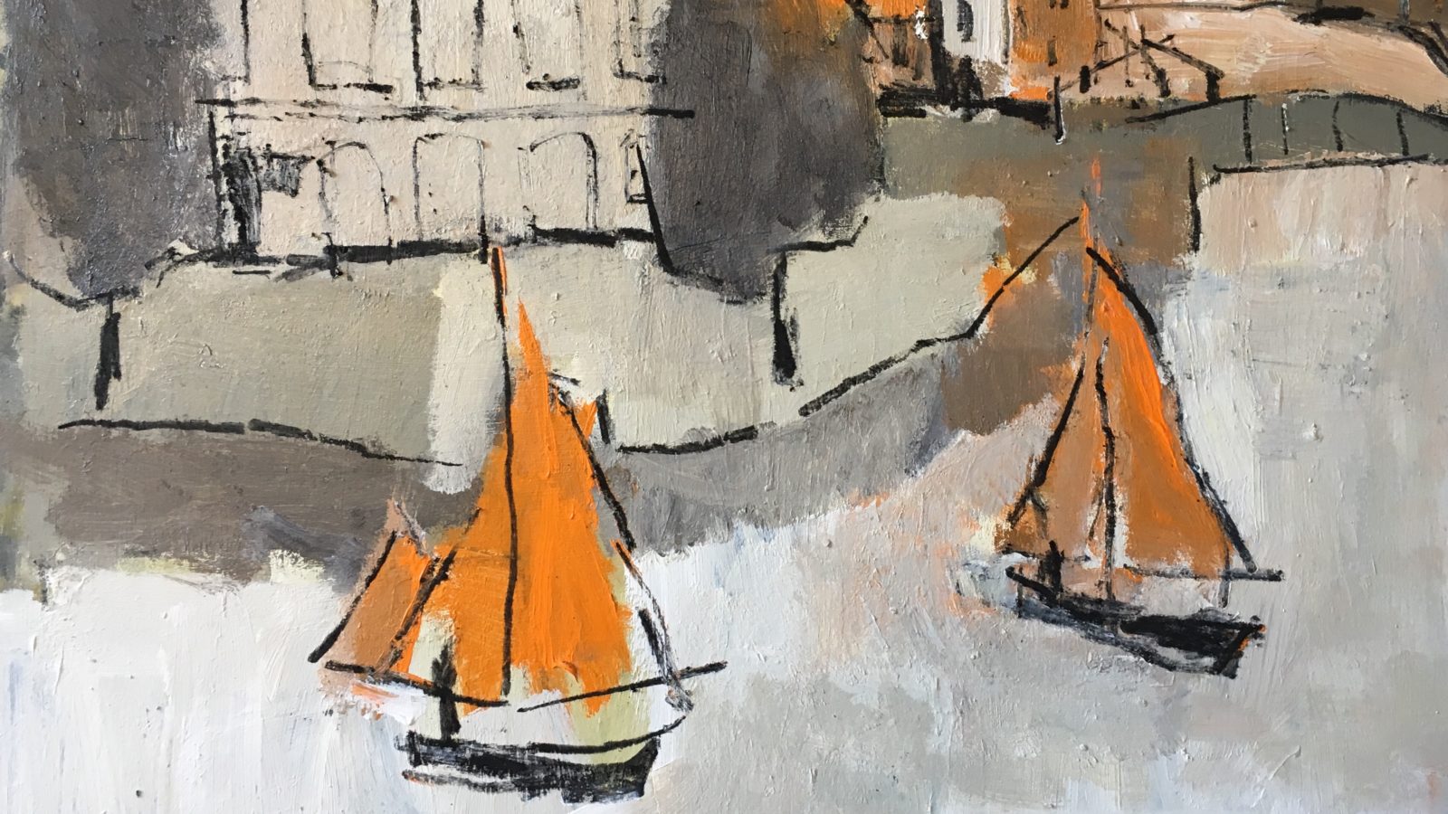 John Evans paints mainly urban cityscapes, often around Bristol (Orange Sails by Arnolfini, detail, pictured). Sam Cartman portrays the uplands of Southern Scotland and Northern England. New to the gallery, Barry Kelly paints the gentler landscapes of southern and south-western England.