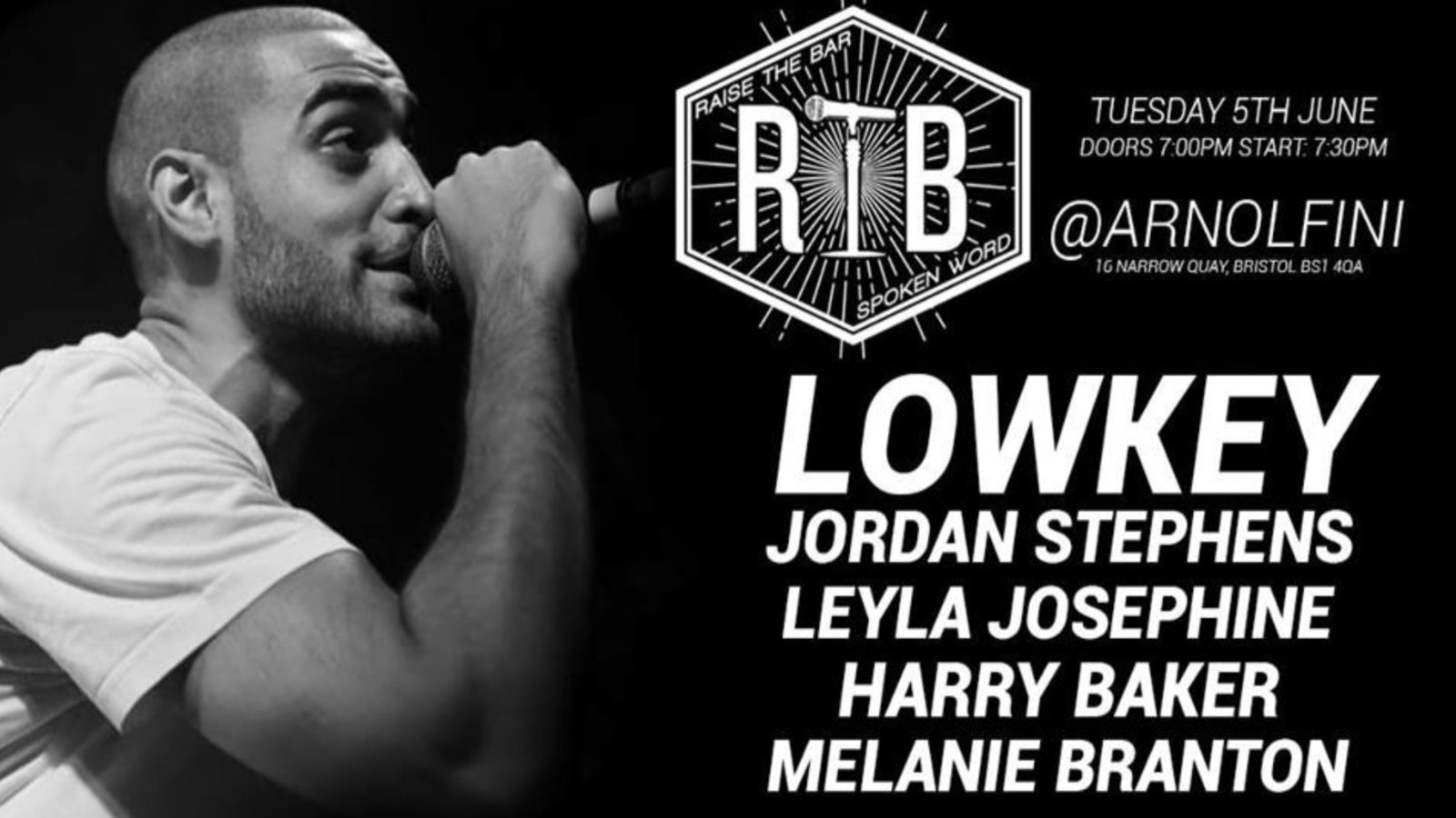 Lowkey and Jordan Stephens top the bill as Raise the Bar host a stunner of a line up for a celebration of poetry, rap and performance art.