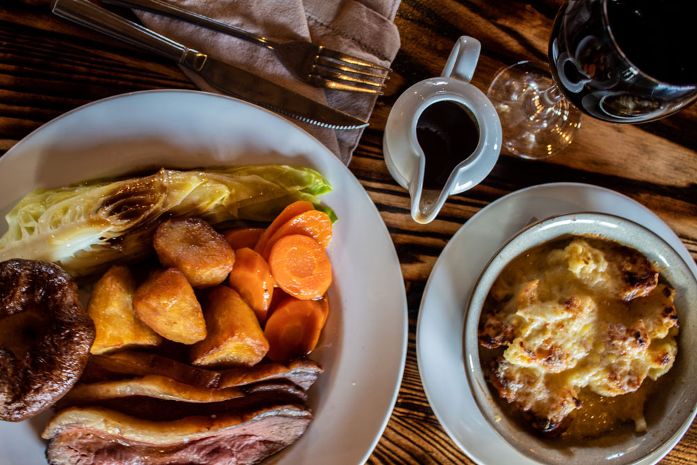 Tickets include entry, Sunday roast beef (or vegetarian option) and dessert.
