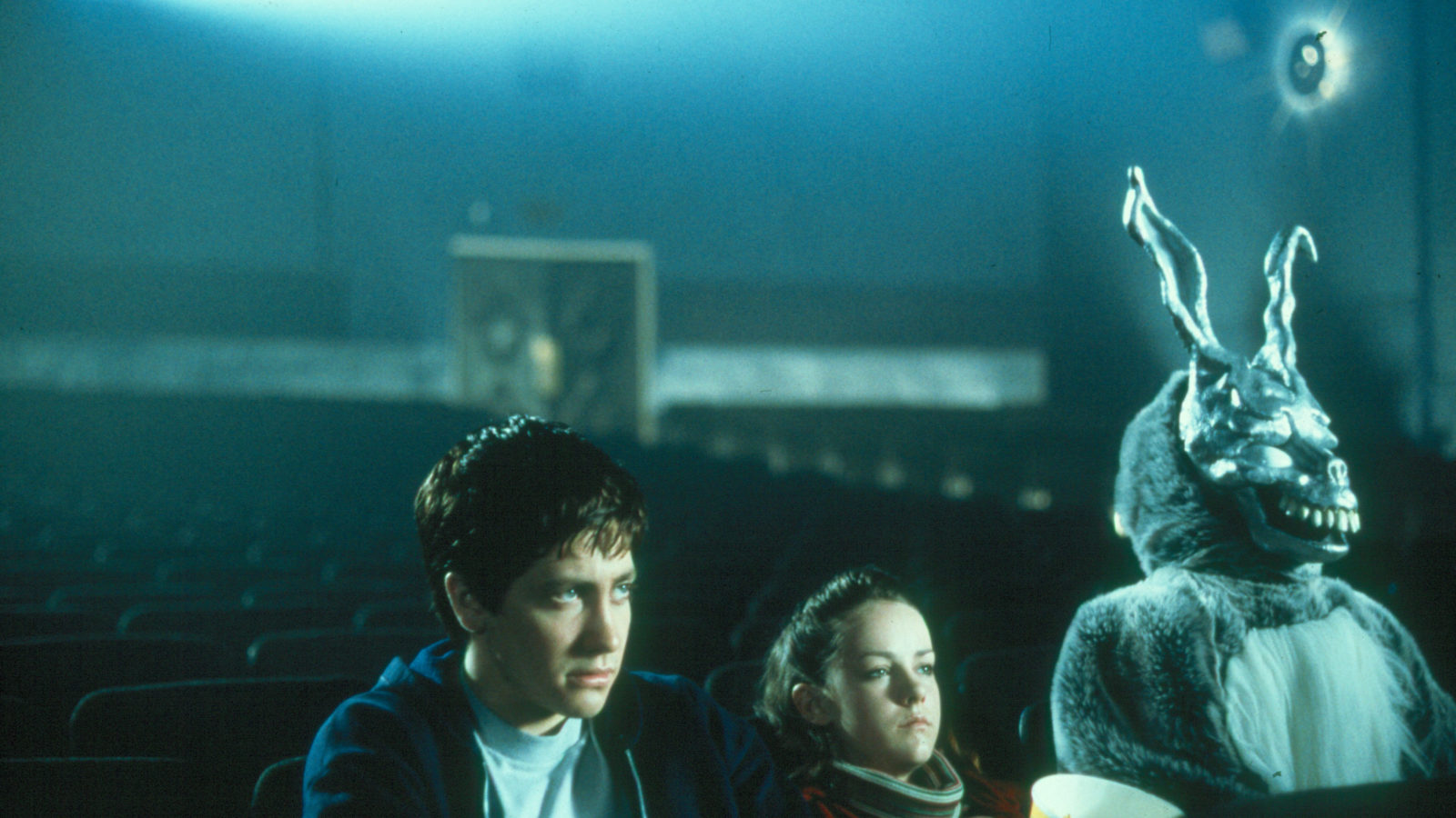 Donnie Darko (Jake Gyllenhaal) is an exceedingly troubled teen. It’s not just that he’s on heavy medication and has regular sessions with a shrink (Katharine Ross). Y’see, lately he’s been accosted by a giant rabbit named Frank, who tells him the world is due to end in 28 days and eggs him on to do Bad Things. But Frank’s no simple baleful bunny. He even saved Donnie’s life by luring him out onto a golf course late at night when an aircraft engine plummeted through the family home and destroyed his bedroom. That no aircraft reported a missing engine is just one of the mysteries surrounding Donnie. He now finds he can see into the future by following ectoplasmic protrusions that emerge from people’s chests, and develops an all-consuming interest in time travel, the key to which may or may not be held by a crazy old woman known as Grandma Death, who continually checks her mailbox for a letter that never comes.