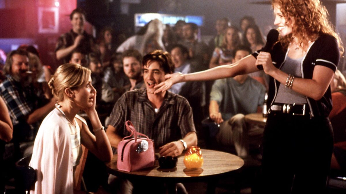 Former college pals Roberts and Dermot Mulroney made a pact that if they were both still unwed by the age of 28 they’d marry each other. Just before the big day, he calls to say he’s fallen for exhaustingly perky Cameron Diaz. Normally, Roberts would get her man by persuading him that they were meant to be together, but Ronald Bass’s reasonably daring script scores in loading the dice in Diaz’s favour and getting bitchy Roberts to recruit her gay chum Everett to play some mildly reprehensible tricks to split them up.