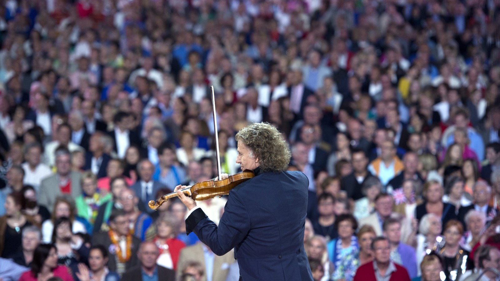 Together Again comprises the usual selection of popular classics, this time drawn from performances around the world. These include Habanera & Manha De Carnaval live from São Paulo, The Rose recorded in Mainau in Germany and The Lonely Shepherd filmed in Bucharest. There’s also a compilation of the Blue Danube, encompassing recordings from concerts throughout André’s 40 year career, during which fans can also enjoy the evolution of his trademark bouffant hairdo. In a new interview, he’ll also be reflecting on his career, including his experiences of the last year, with host Charlotte Hawkins.