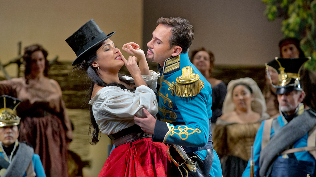 Bartlett Sher‘s staging of Donizetti’s comic opera sees the return of tenor Matthew Polenzani as Nemorino, hxing won wide acclaim for his 2013 performance in the role. Rising South African soprano Pretty Yende is the spirited Adina, Davide Luciano makes his Met debut as the arrogant soldier Belcore, and Ildebrando D’Arcangelo is the potion-peddling Doctor Dulcamara.