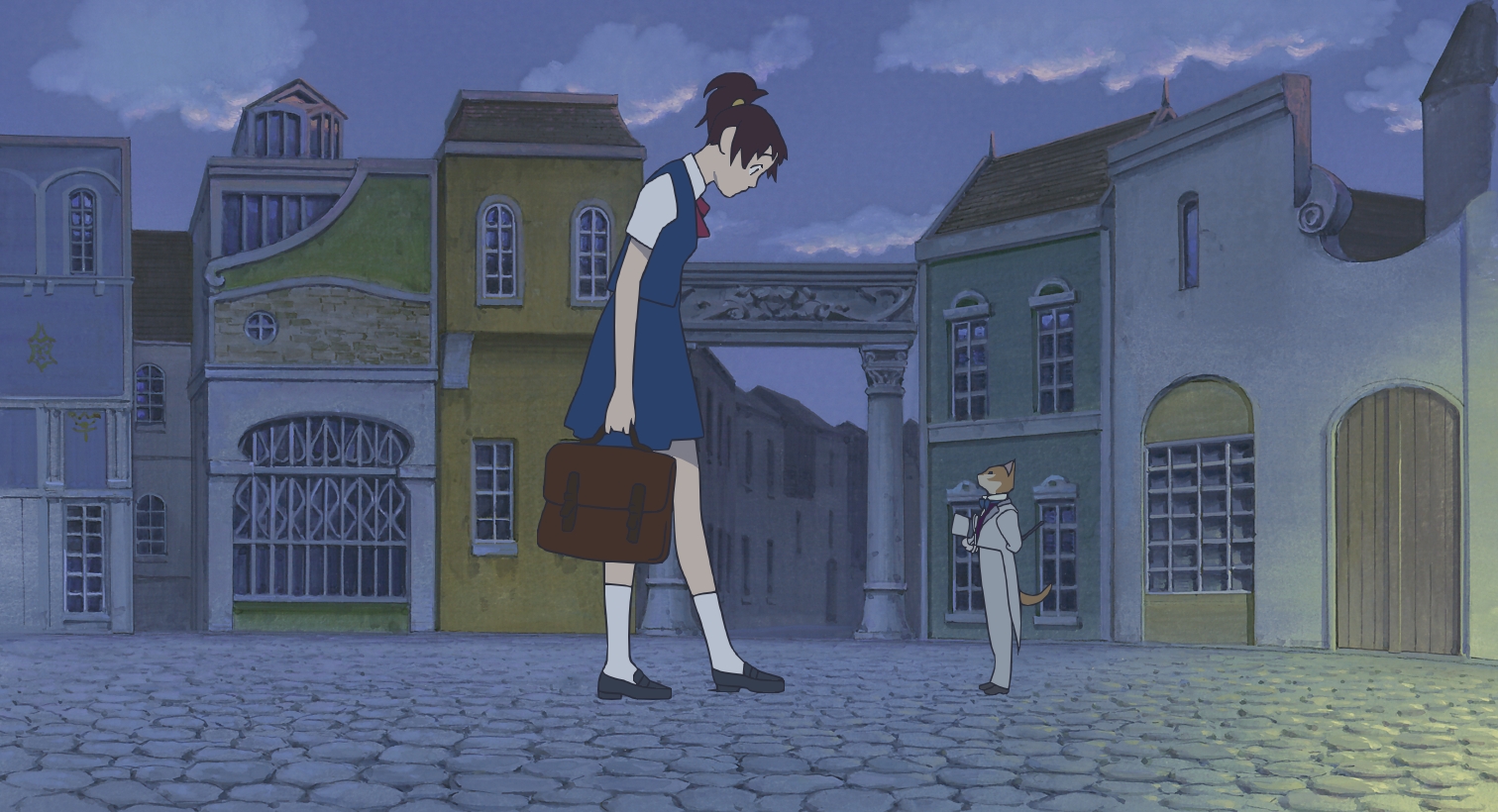 When clumsy schoolgirl Haru (Chizuru Ikewaki) snatches a cat from the path of an oncoming lorry, the feline stands up on his hind legs, bows politely, explains that he’s in a hurry, and dashes off. Suitably gobsmacked, Haru gets a bigger surprise when she’s awoken in the middle of the night by a huge procession of upright moggies. They stop outside her house, where the long-haired King of the Cats (Tetsuro Tamba) thanks her for saving his son, Prince Lune (Takayuki Yamada), and promises a reward. The next day, she finds her pockets full of catnip and her school locker bulging with gift-wrapped mice. As these are rather inappropriate gifts for a human, the King pledges to bestow his greatest honour by marrying her off to Lune, raising the alarming prospect of cartoon bestiality. A mysterious voice then guides suitably shocked Haru to a greedy, corpulent comedy cat named Muta (Tetsu Watanabe, veteran star of Takeshi Kitano and Akira Kurosawa flicks) and thence the suave swordsfeline Baron Humbert von Gikkingen (Yoshihiko Hakamada).