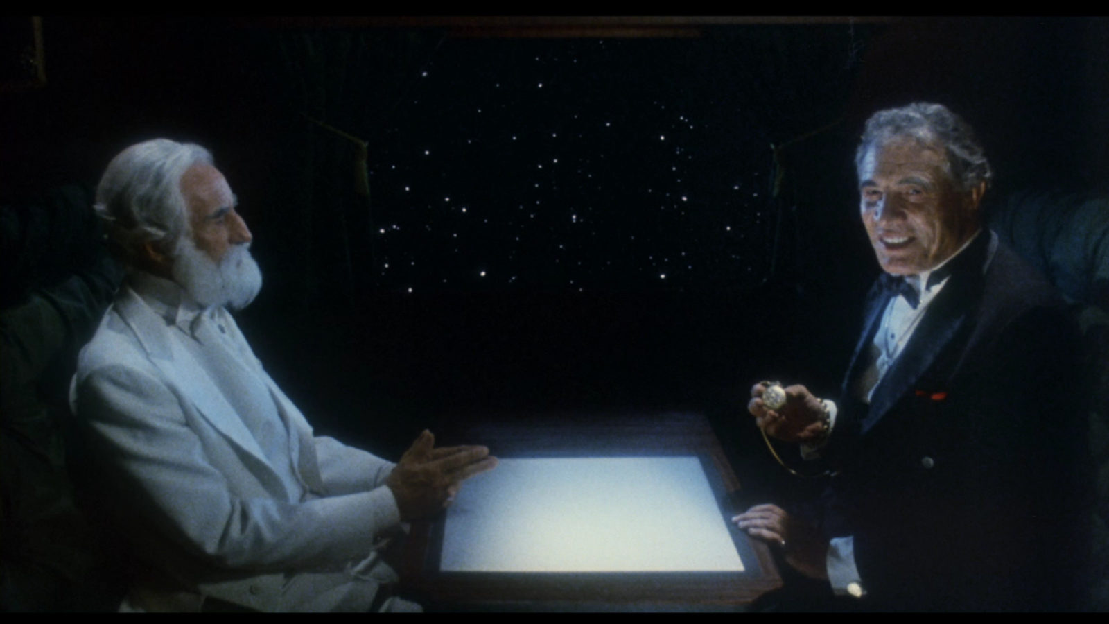 Portmanteau horrors – don’tcha just love ’em? From Dead of Night to the first Creepshow, they pack plenty of scares into a series of concise stories. Not this one, though. This one’s crap. It’s framed by a train journey (yep, just like Dr. Terror’s House of Horrors, only crap – did I mention that?). This one’s going to Hell, with God and Satan sharing a carriage to discuss the fate of three individuals whose stores are about to unfold. In The Case of Harry Billings, a fella is whisked to a nuthouse where he’s hypnotised into snaring victims for an organ-harvesting operation. The Case of Greta Connors follows a pair of young lovers who join a death cult. In The Case of Claire Hansen, a henchperson to Beelzebub sets out to destroy mankind.